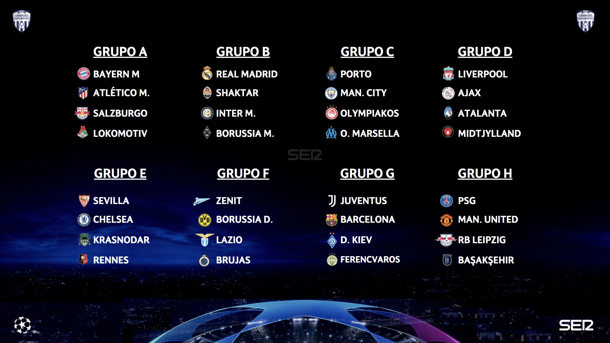 Este jueves, en mónaco, la uefa realizó el sorteo de los grupos de la champions league 2019/2020. Últimas classificações da fase de grupos da uefa champions league. The official licensed stores are operated by 3rd party commercial partners appointed under license by uefa. Este vídeo ha sido publicado en el contexto del diario lavanguardia.com artículo relacionado:suscríbete al canal de la vanguardia: Os quatro primeiros classificados dos campeonatos de espanha, inglaterra, itália e alemanha;